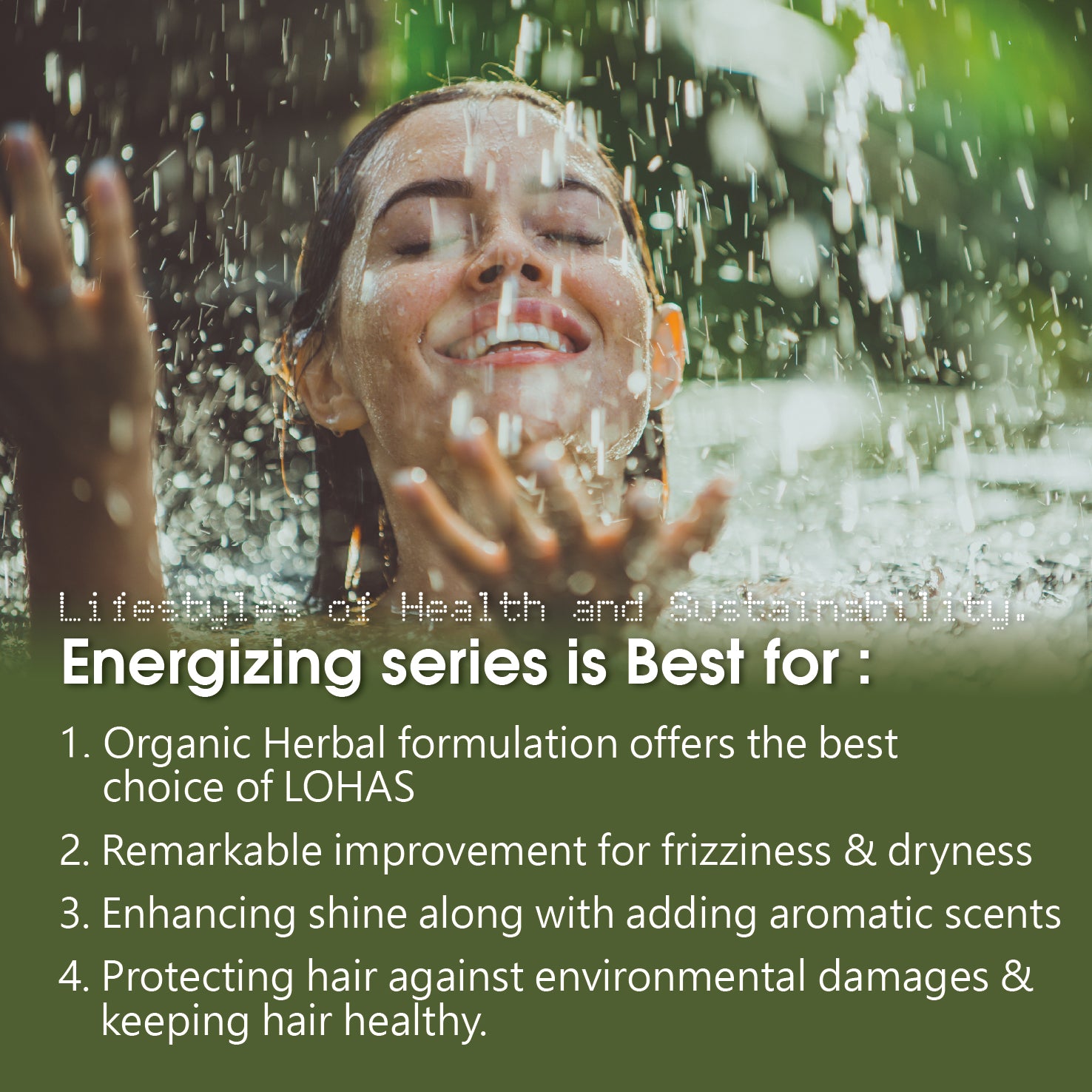 活力系列包括:洗髮精、護髮霜和蛋白護理(深層護理)。其有機配方是樂活(LOHAS)概念的最佳選擇。它能顯著改善毛躁和乾燥,並增強秀發光澤。它還能保護頭髮免受風、紫外線、高溫和其他環境損害。
